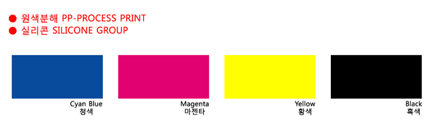 Silicone ink has good touch feel and elastic and used in non toxic pigment so very stable to use - 실리콘 잉크는 프라스틱 졸 잉크를 포함 어떠한 잉크와도 겹치기 인쇄나 혼합 사용할 수 없다.